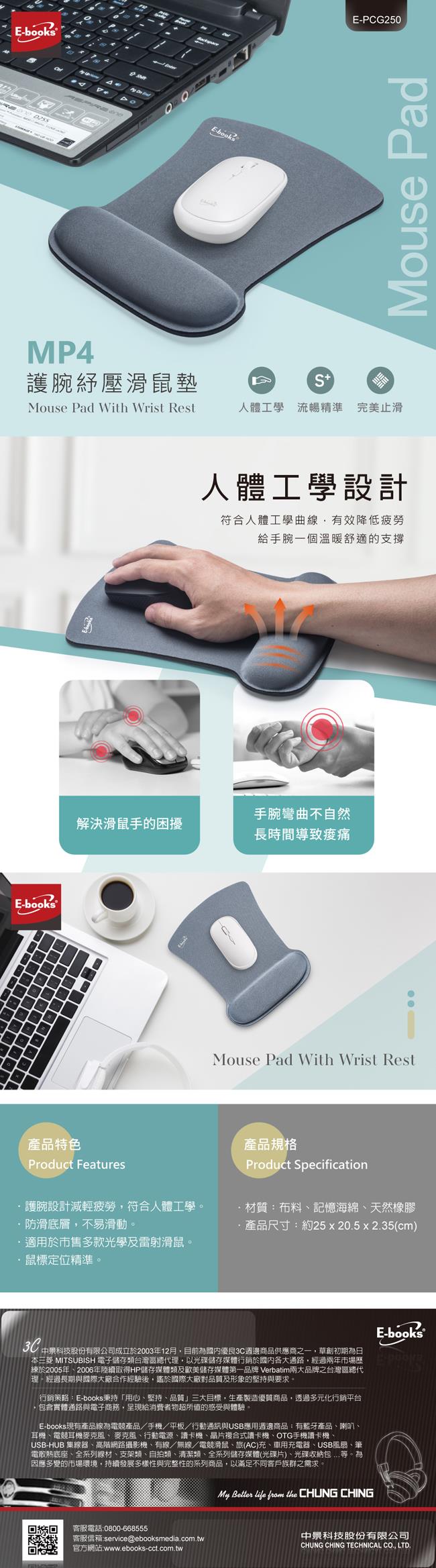 E-books MP4 護腕紓壓滑鼠墊