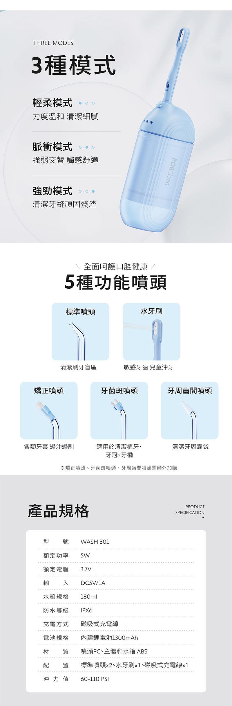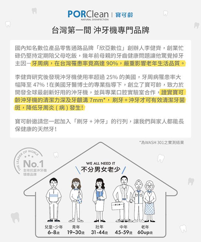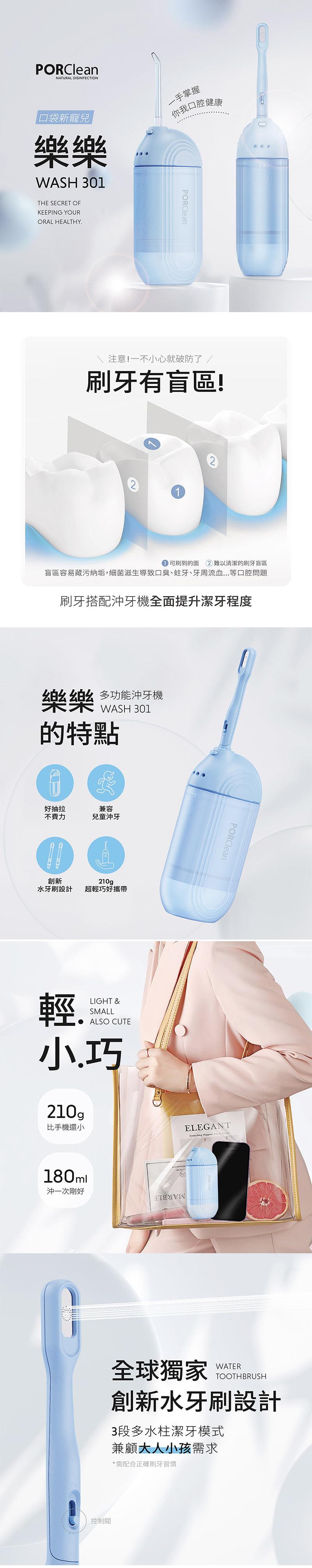 PORClean寶可齡 WASH 301 攜帶型樂樂多功能沖牙機