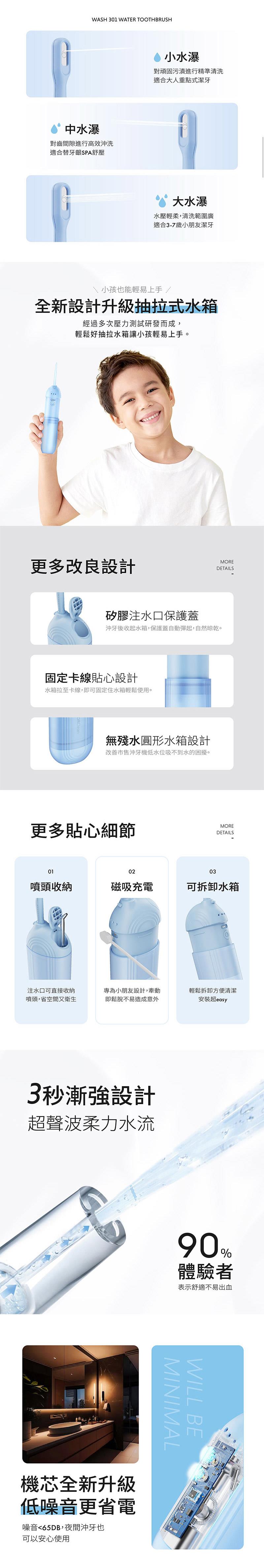 - 創新水牙刷3段水柱,大人小孩都適用