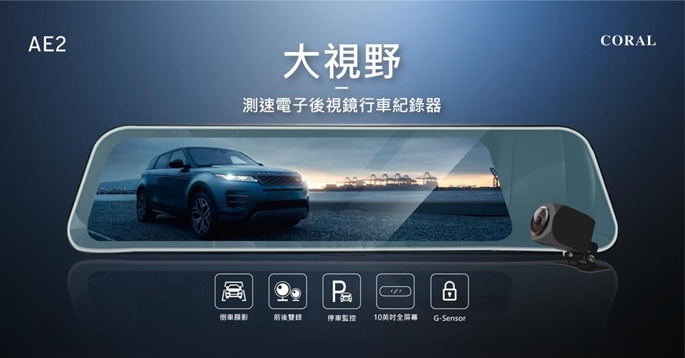 【行車紀錄熱銷】CORAL AE2 GPS測速 10吋觸控電子後視鏡 12吋加長鏡面 (送32G)