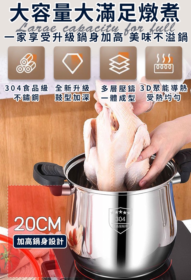 產品名稱:304不鏽鋼微壓雙耳高桶湯鍋