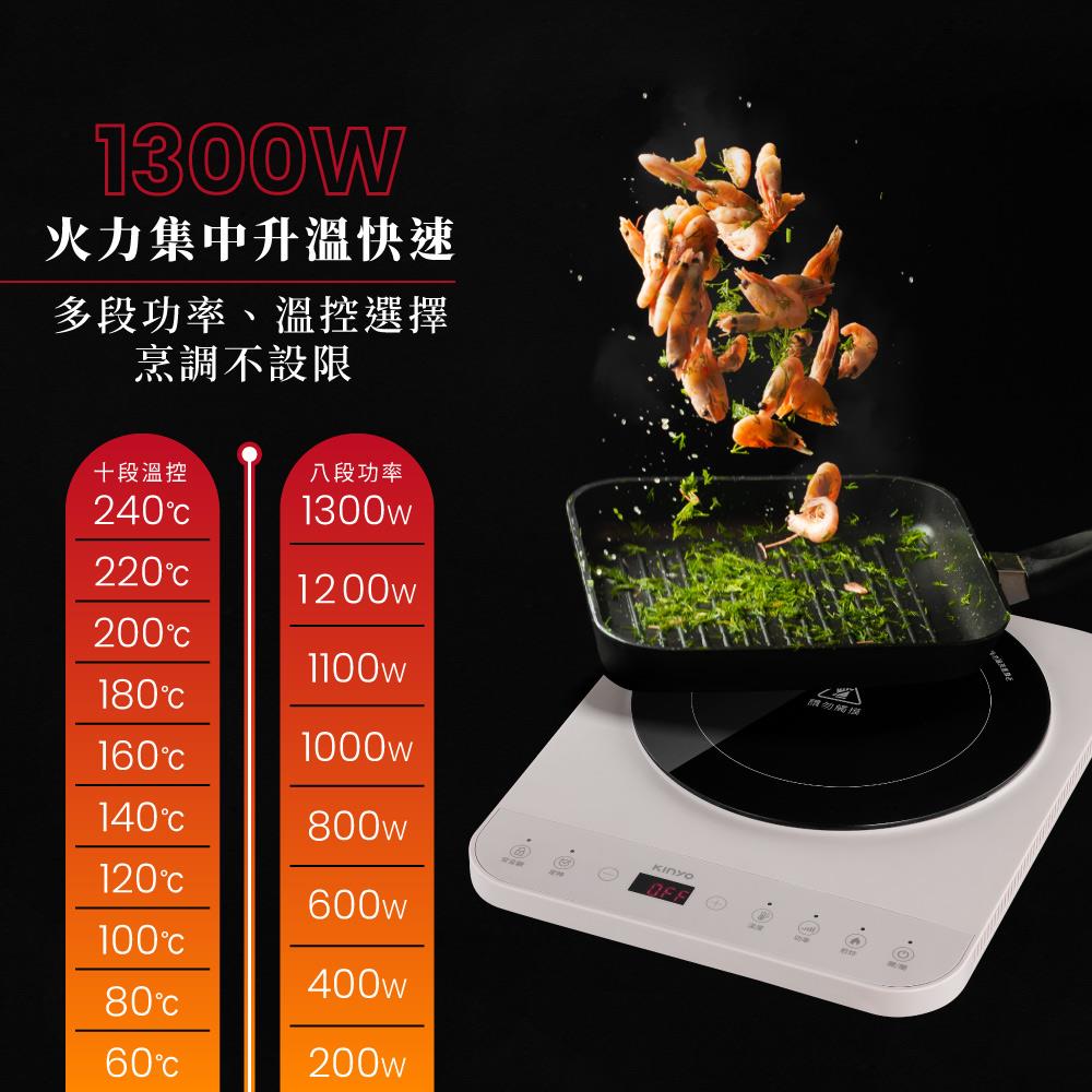 - 200W-1300W八段功率,火力集中升溫快速
