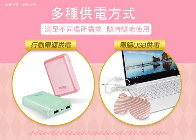 1.先將內附USB電源線分別連接眼罩與電腦USB埠或USB旅充或行動電源