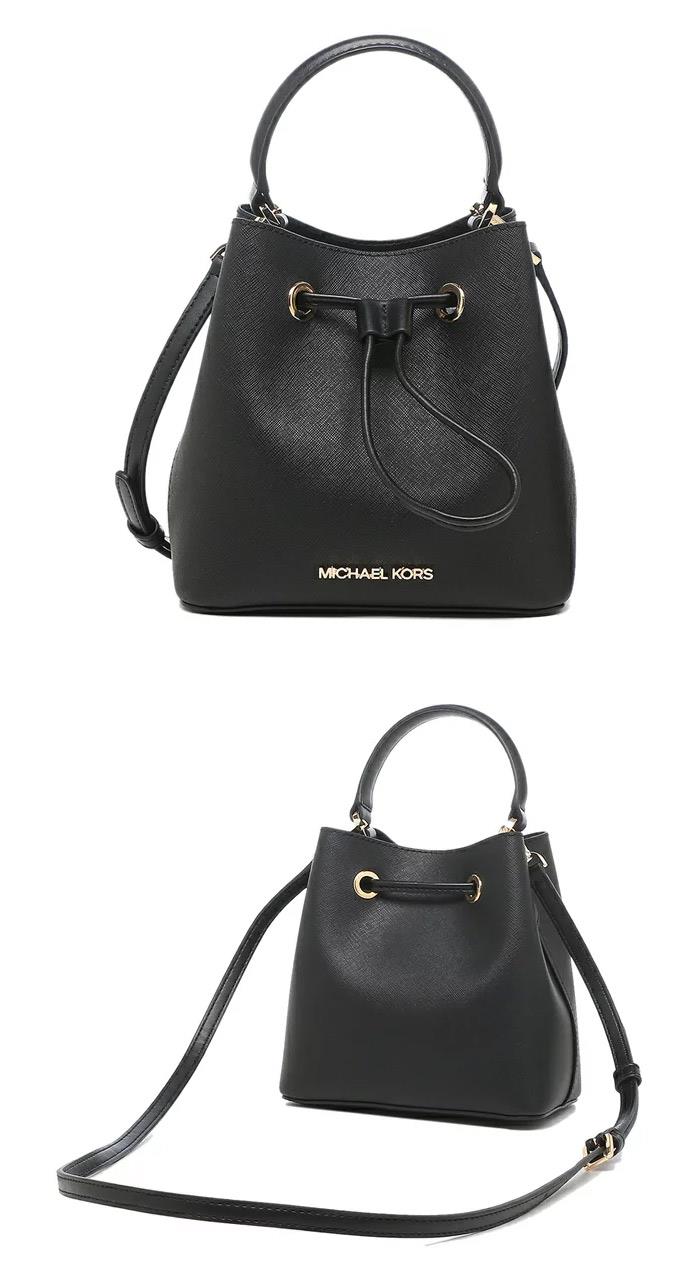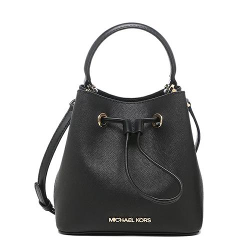 MICHAEL KORS 撞色滿版LOGO水桶包/束口包/兩用包-黑 35T0GU2C0L