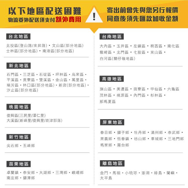 ※偏遠地區、樓層費及其它加價費用,皆由廠商於約定配送時一併告知,廠商將保留出貨與否的權利。