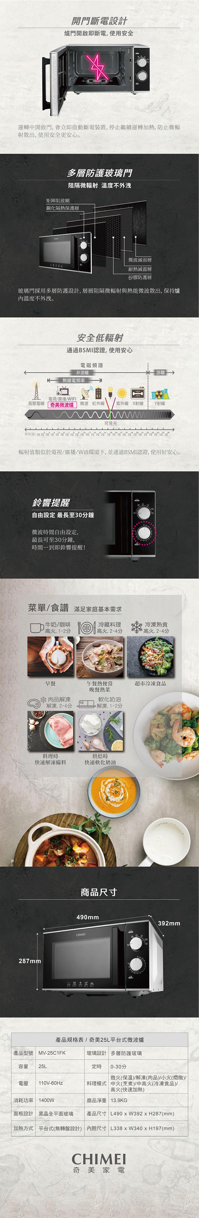 CHIMEI奇美 25L平台式微波爐(升級黑晶面板) MV-25C1FK