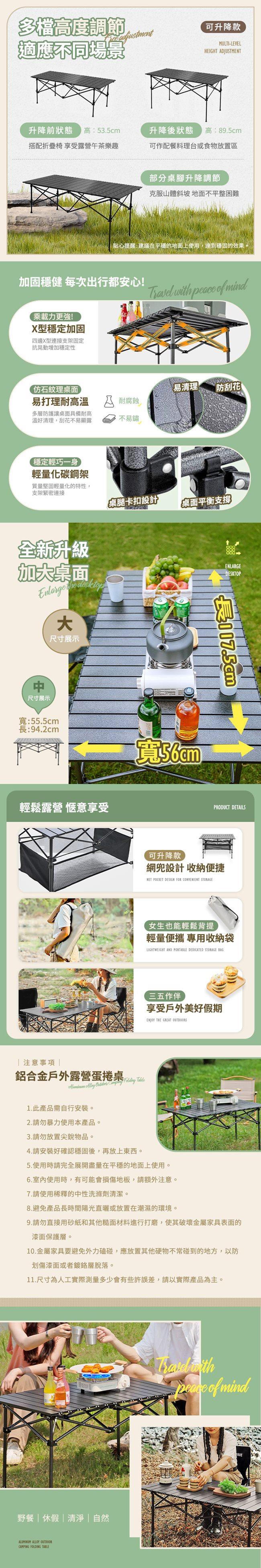 可升降款 型號:TY-06 材質:碳鋼+不鏽鋼 顏色:黑色 尺寸/重量: 55.5x94.2cm/4.45kg 地面高度:53.5-89.5cm(高度自由調節) 包裝尺寸:16.5x21.5x58.5cm 包裝重量:5.1kg 商品內容:桌面x1/桌架x1/支撐架(長)x2/支撐架(短)x2/收納袋x1/網兜x1 商品產地:中國