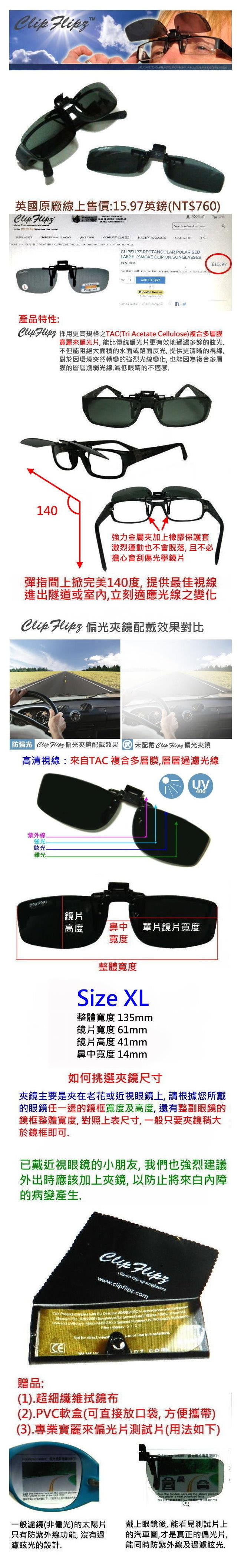 【英國ClipFlipz】一級光學抗UV400寶麗來偏光夾鏡-XL-Grey (紳士黑)