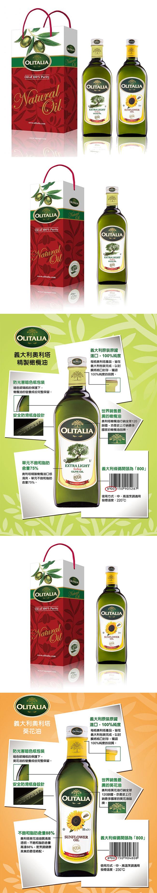 Olitalia 奧利塔 精純橄欖油1000ml+葵花油1000ml禮盒組 油質清澈