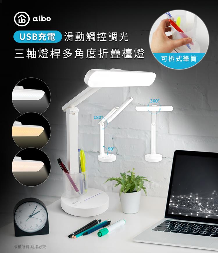 aibo 多角度觸控 筆筒折疊檯燈(USB充電)★三軸燈桿多角度調節★