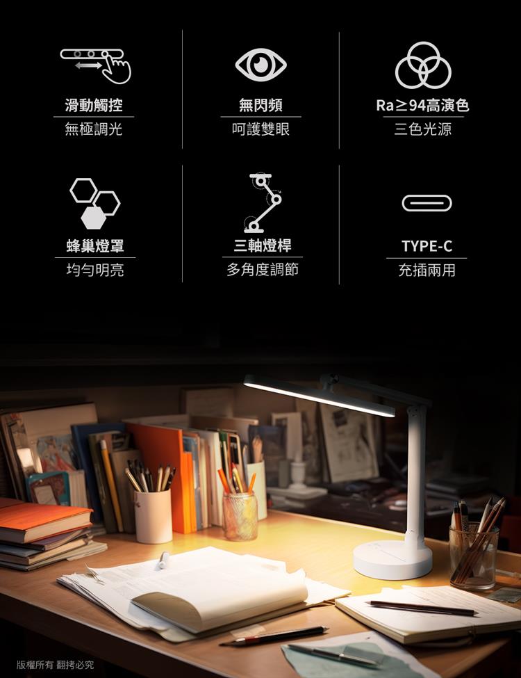 讓閱讀、工作更輕鬆。三種色溫模式切換(冷白光、自然光、暖黃光),