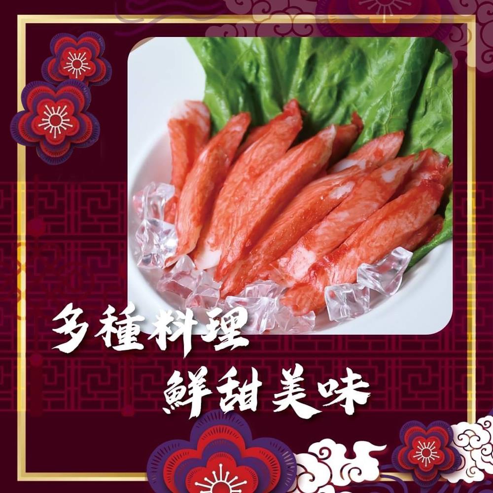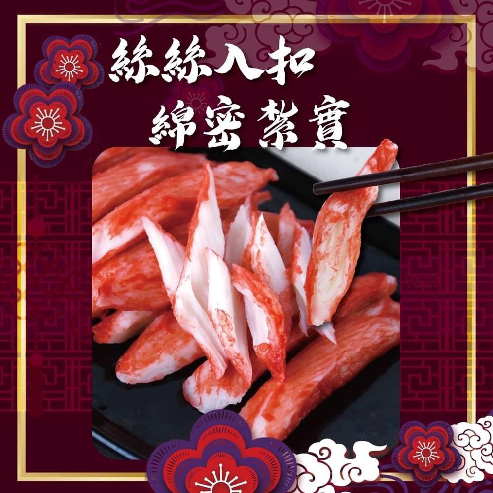 成分:魚漿(金線魚)、澱粉(小麥粉、木薯粉)、香料、鹽、糖、蟹肉抽出物、調味劑(L-麩酸鈉)、蛋白、植物油(大豆、棕櫚、椰子)、甜味劑(D-山梨醇)、食用色素(紅麴色素、紅椒色素)、水